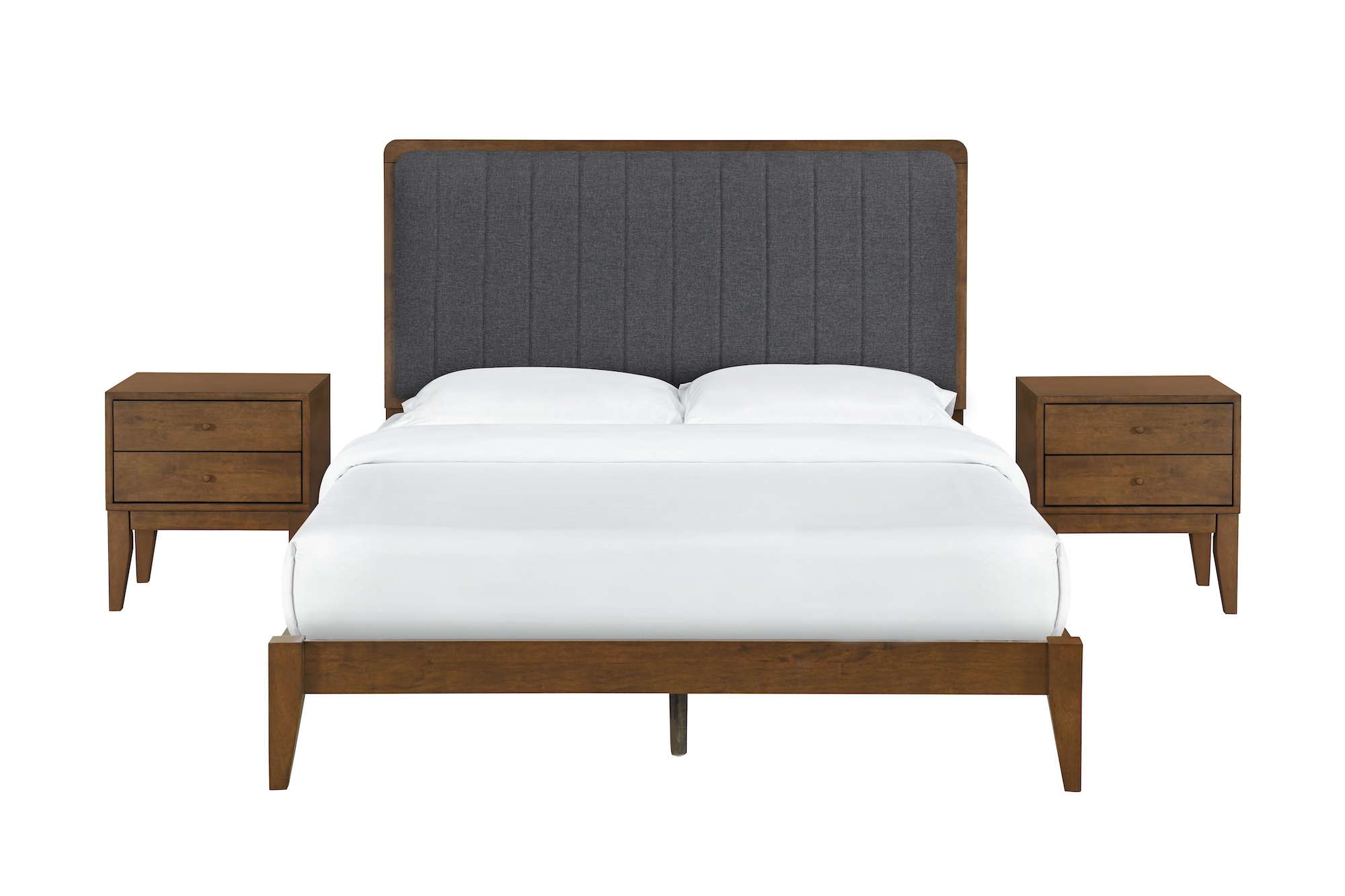 - Sophisticated Design: The walnut wood frame on the tall, channel tufted upholstered headboard adds a sophisticated touch to any bedroom décor